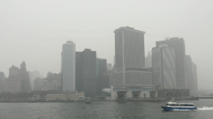 これはその日の大気の状態によりますが、空気の湿度が高いあるいは塵が多いと状態ではミー散乱現象が起きやすくなります。これは光の波長よりも空気中の粒子が大きいときに起きるもので、さまざまな波長の光を均等に散乱しやすくなります。多くの波長の光が混ざるほど白っぽく見えるのです。雲や霧が白く見えるのはこれが原因です。ゆえに遠くの景色ほどこれらが重なり白く霞んで見えるのです。